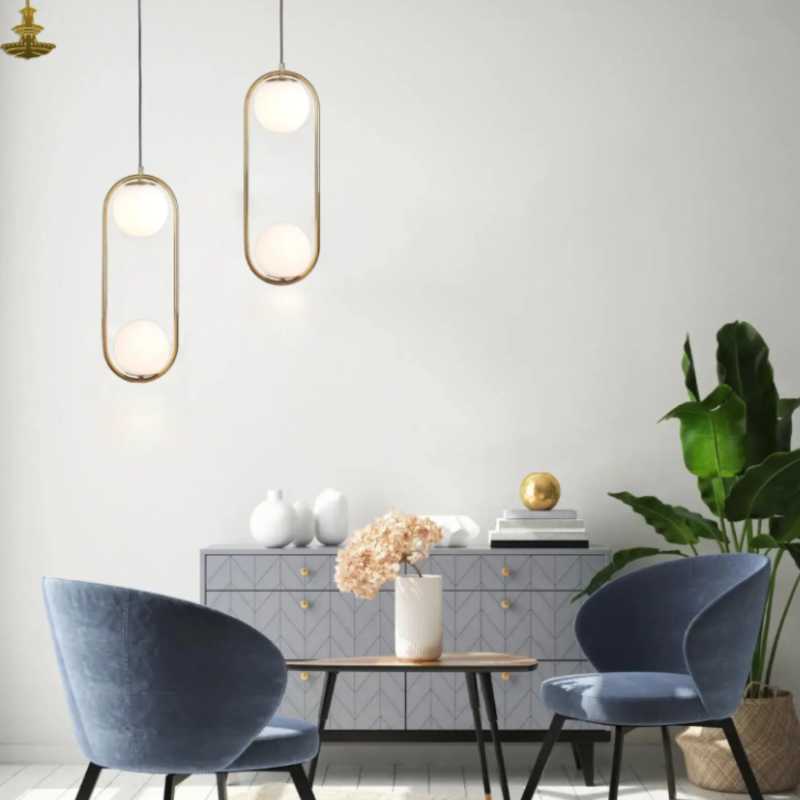 Enhance your interior with this graceful dual celestial pendant lamp, featuring two opal glass spheres in a sleek 50cm vertical design for a soft, balanced glow.
